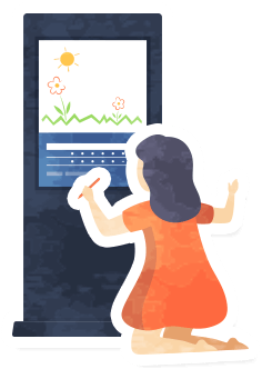 小児科待合室にチームラボのスケッチピストンを設置しています。指で触れて、お絵描き感覚で線を描いたり、動くスタンプを押したりして音を奏でられる知育タッチパネルです。